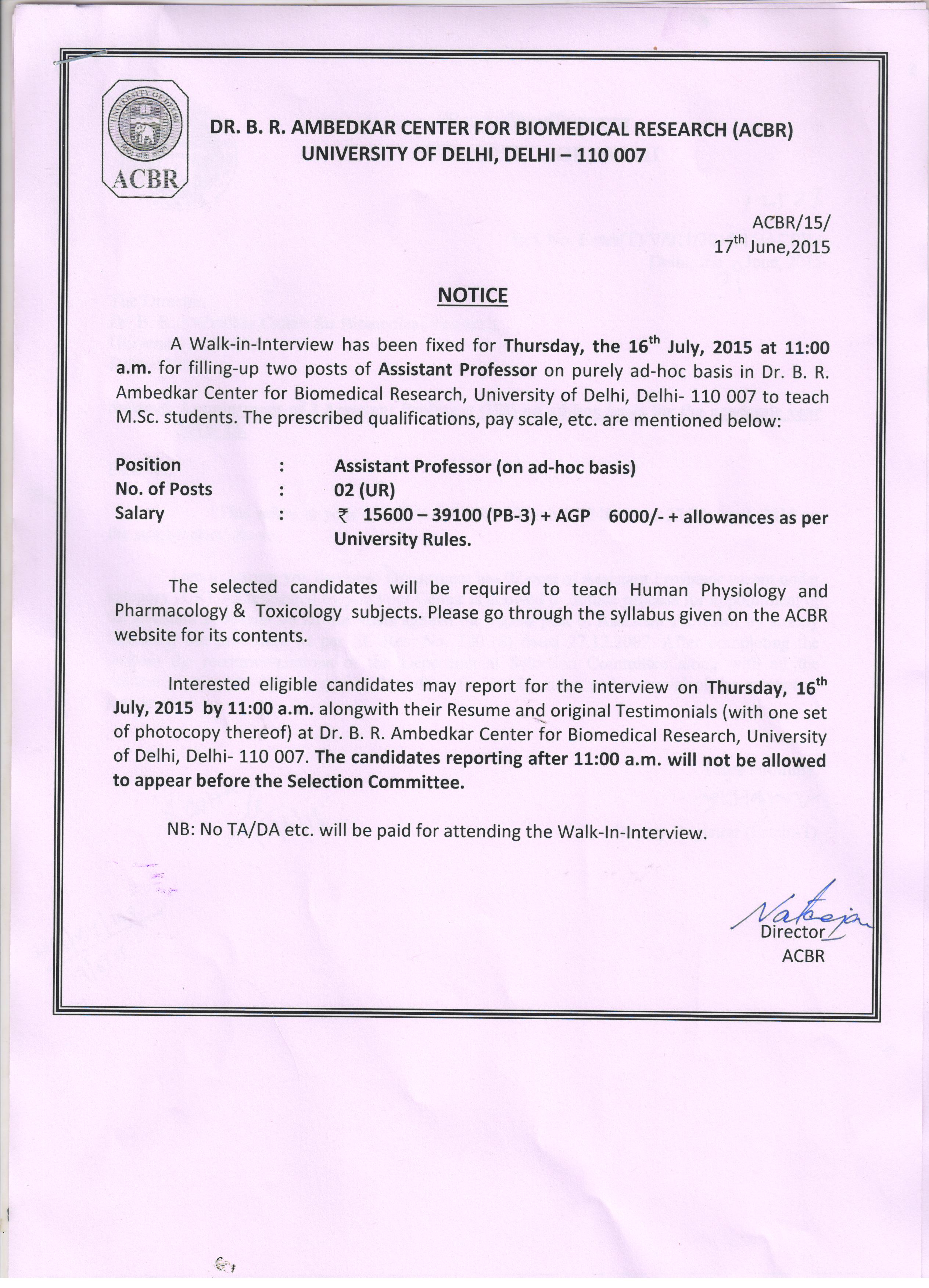 ACBR Assistant Professor Walk Ins in Human Physiology